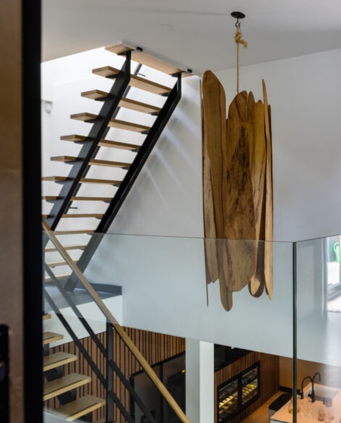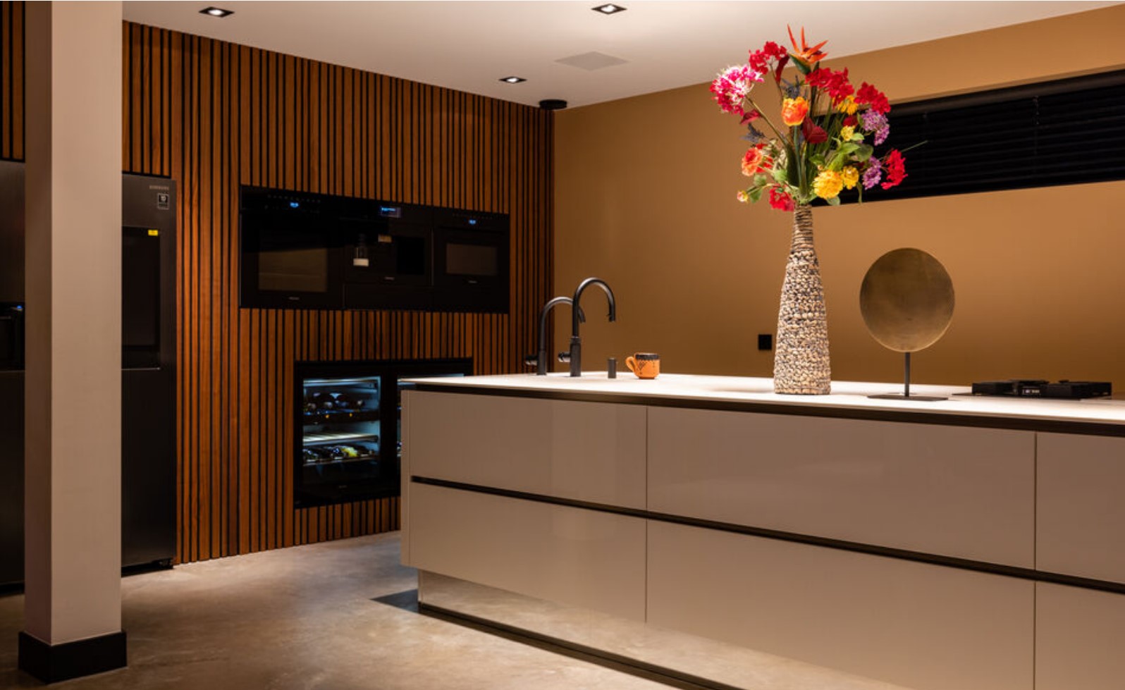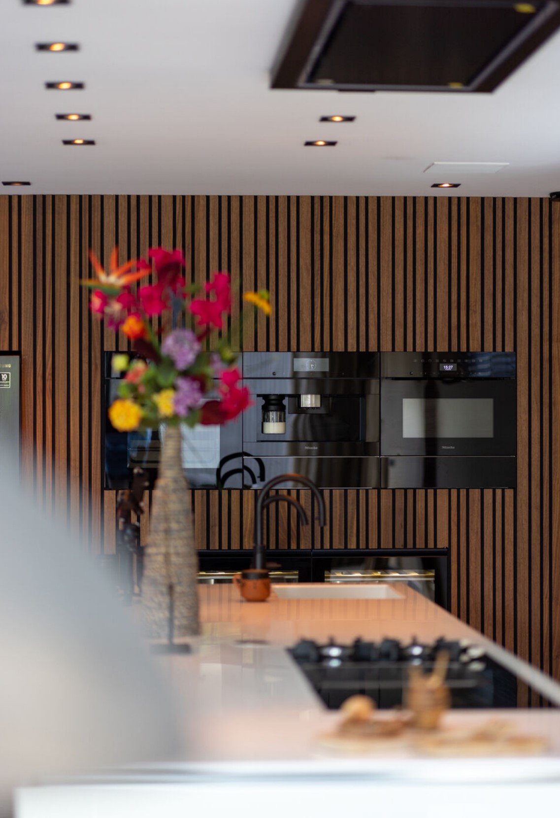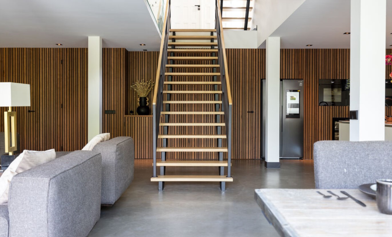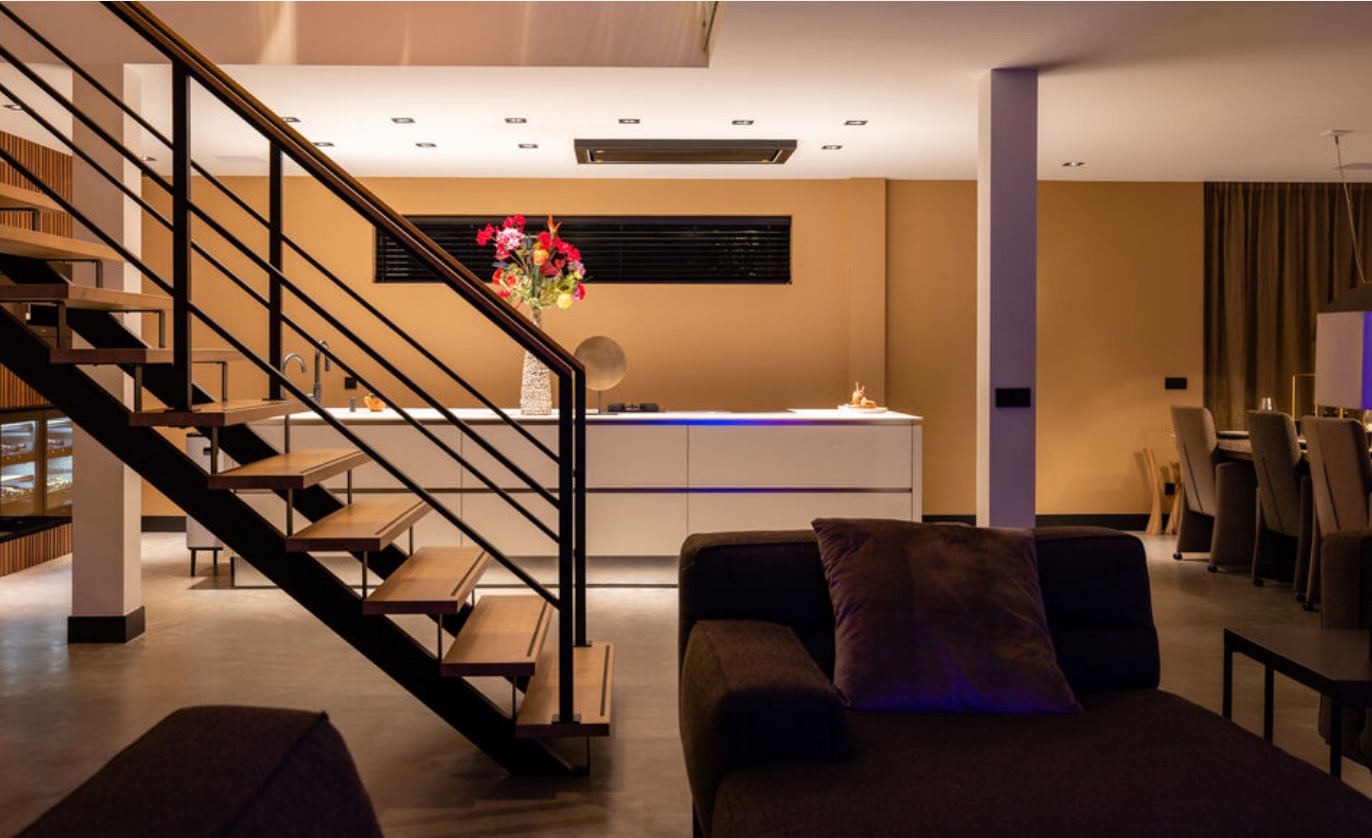 Deze moderne villa in Zevenhuizen was oorspronkelijk volledig in zwart-wit ingericht, met alle muren in het wit. Door het toevoegen van warme tinten en het gebruik van veel hout heeft de woning een sfeervollere en luxueuzere uitstraling gekregen. De combinatie van strakke lijnen, natuurlijke materialen en rijke accenten zorgt voor een elegant en harmonieus geheel.