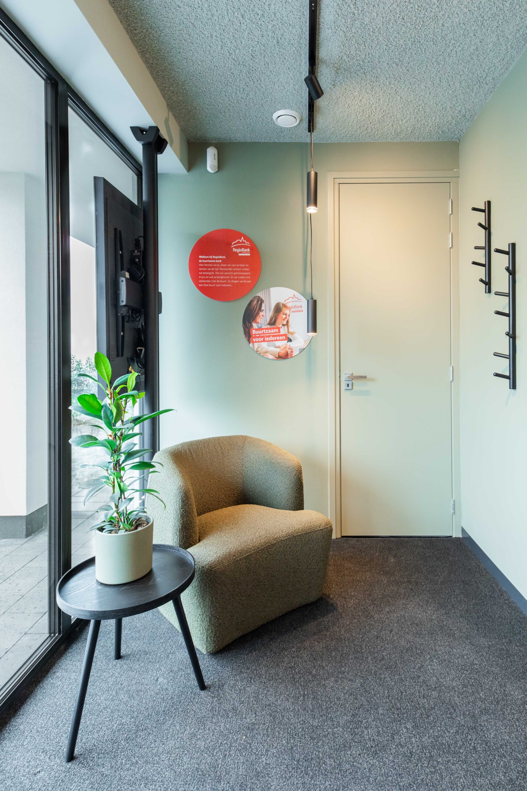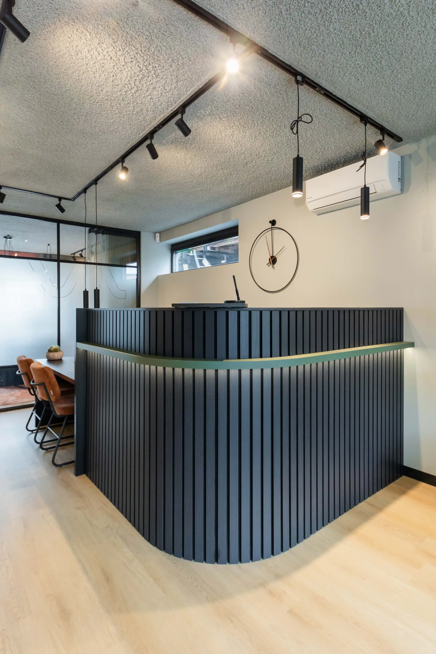Combi Design verzorgde het gehele ontwerp. Met als hoogtepunt het maatwerkmeubel DE ontvangstbalie perfect op maat en met rondingen.