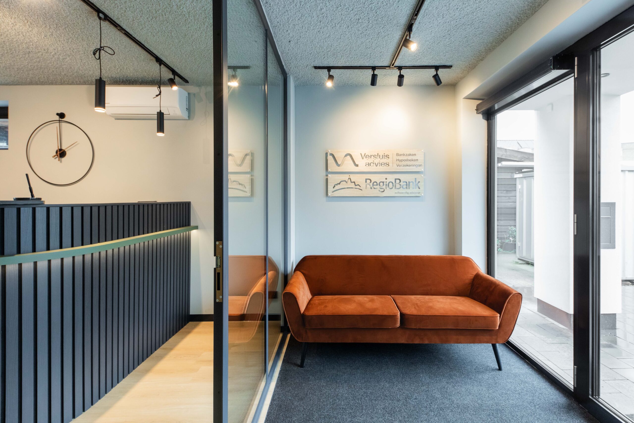 Wees welkom in het nieuwe kantoor van Versluis Assurantiën & Regiobank Giessenburg. Combi Design heeft een kleurrijk ontwerp gecreëerd dat direct in het oog springt. De prachtige ontvangstbalie nodigt uit tot een warm welkom, terwijl de locatie langs het water van de Giessen een rustgevende sfeer biedt. In de stijlvolle spreekkamers komt functionaliteit samen met esthetiek, waardoor elke ontmoeting een plezierige ervaring wordt.